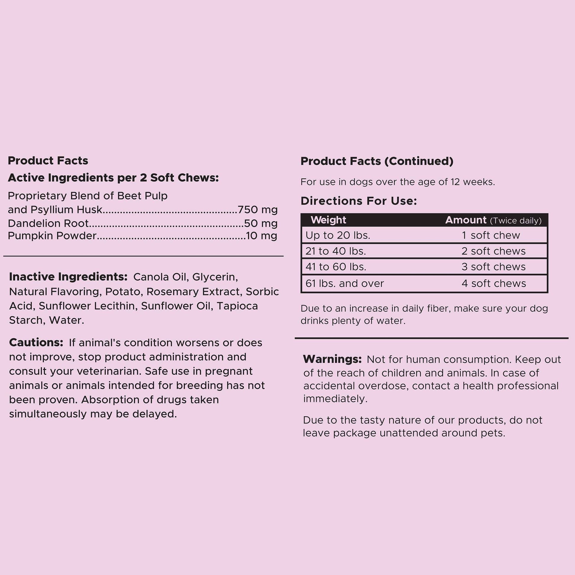 Help your furbaby overcome his smelly and frustrating scooting problem with the Chew + Heal Stop the Scoot Anal Gland Support & Bowel Function Dog Supplement. These lip-smacking, chicken and bacon flavored chews are specially formulated to help support your doggo’s normal and healthy bowel and anal gland functions by increasing his daily fiber intake. Made with potent and wholesome ingredients—like beet pulp, pumpkin powder, rosemary extract, sunflower lecithin, dandelion root and psyllium husk–these paw-some chews will help your pup stop scooting and feel more like his regular, adorable self. Made in the USA. Digestive dog supplement fosters regular, firm stools—which helps keep your pup’s anal glands from clogging and reduces scooting behavior. Made with natural ingredients like psyllium husk, dandelion root, pumpkin, beet pulp, rosemary and sunflower lecithin. Provides a great daily fiber boost to address digestive issues that often lead to anal sac pain and swelling.