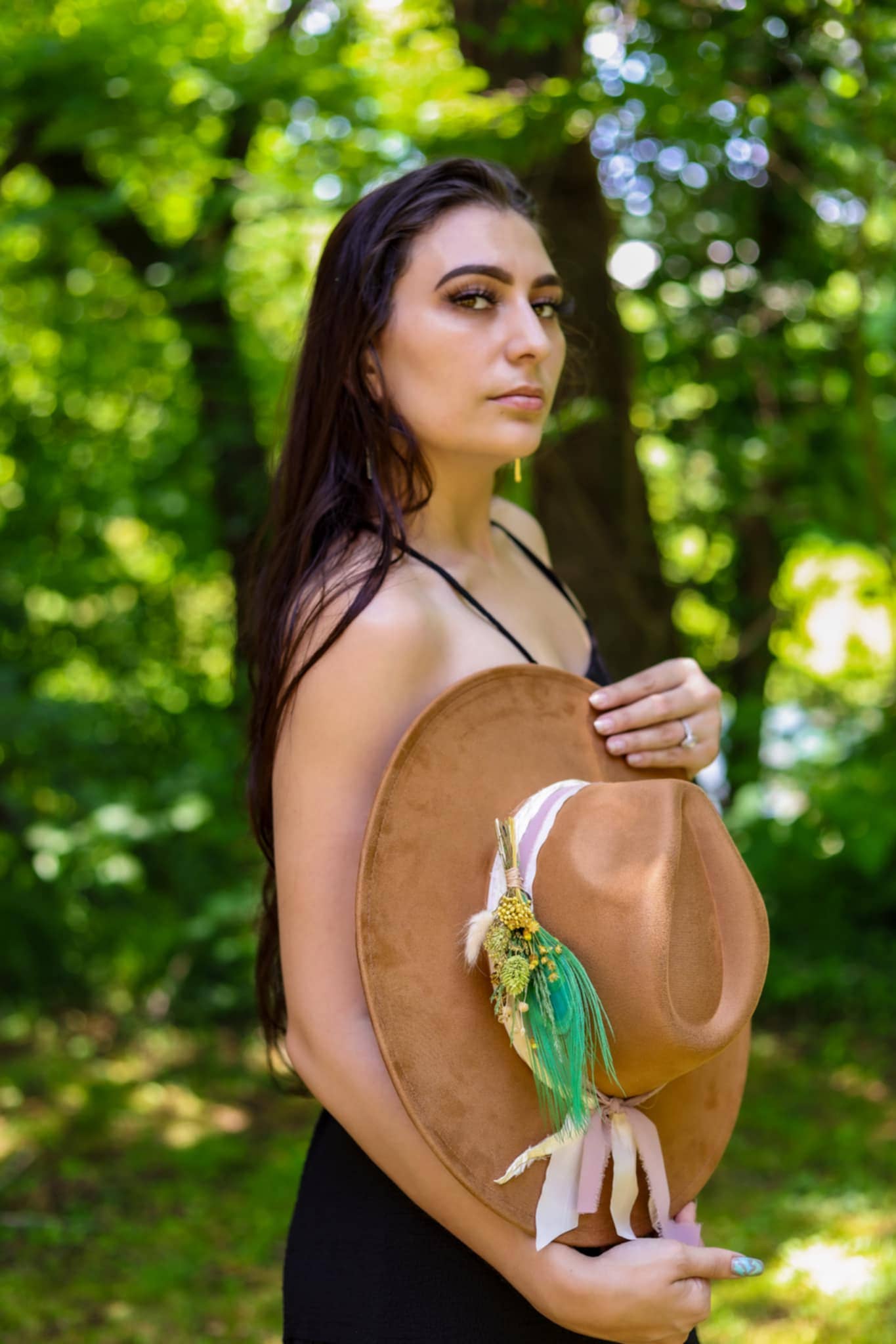 An assortment of our bestselling colors - neutrals, earth tones, moody hues, and colorful. All pins include a mixture of dried and faux florals and feathers. Images shown are examples and exact styles will vary due to florist's choice. Includes a lapel pin backing for easy application. These are approx. 6in in length but can vary slightly due to nature of product. What sets our pins apart? Years of floral design experience and our proprietary in-house manufactured pin backing. All of our pins include a backing we've specially developed for a secure, discreet application to hats. *Does not include hats - photo included for reference