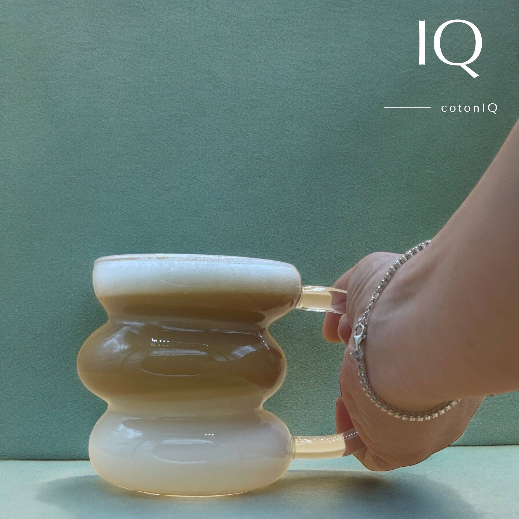 cotonIQ - Designer glass mug with handle for hot and cold drinks – transparent – 450 ml