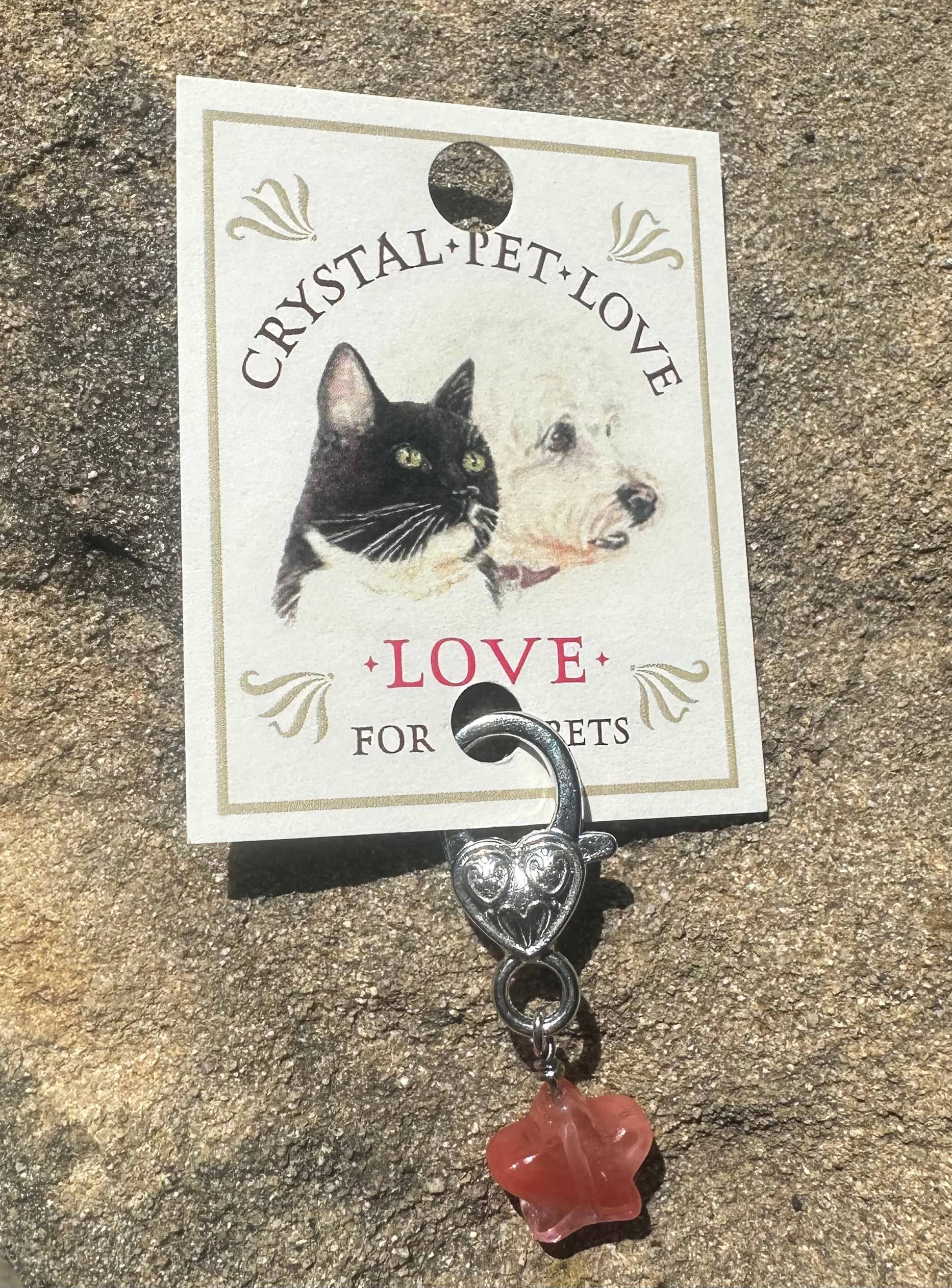 The Crystal Pet Love Cherry Quartz Star Pendant enhances your pet’s spiritual energy with the natural power of cherry quartz. This carefully crafted star-shaped pendant supports and amplifies love vibrations, promoting emotional harmony and connection. Ideal for pets needing gentle energetic support, it combines elegance with meaningful crystal benefits to foster a balanced, loving aura.
