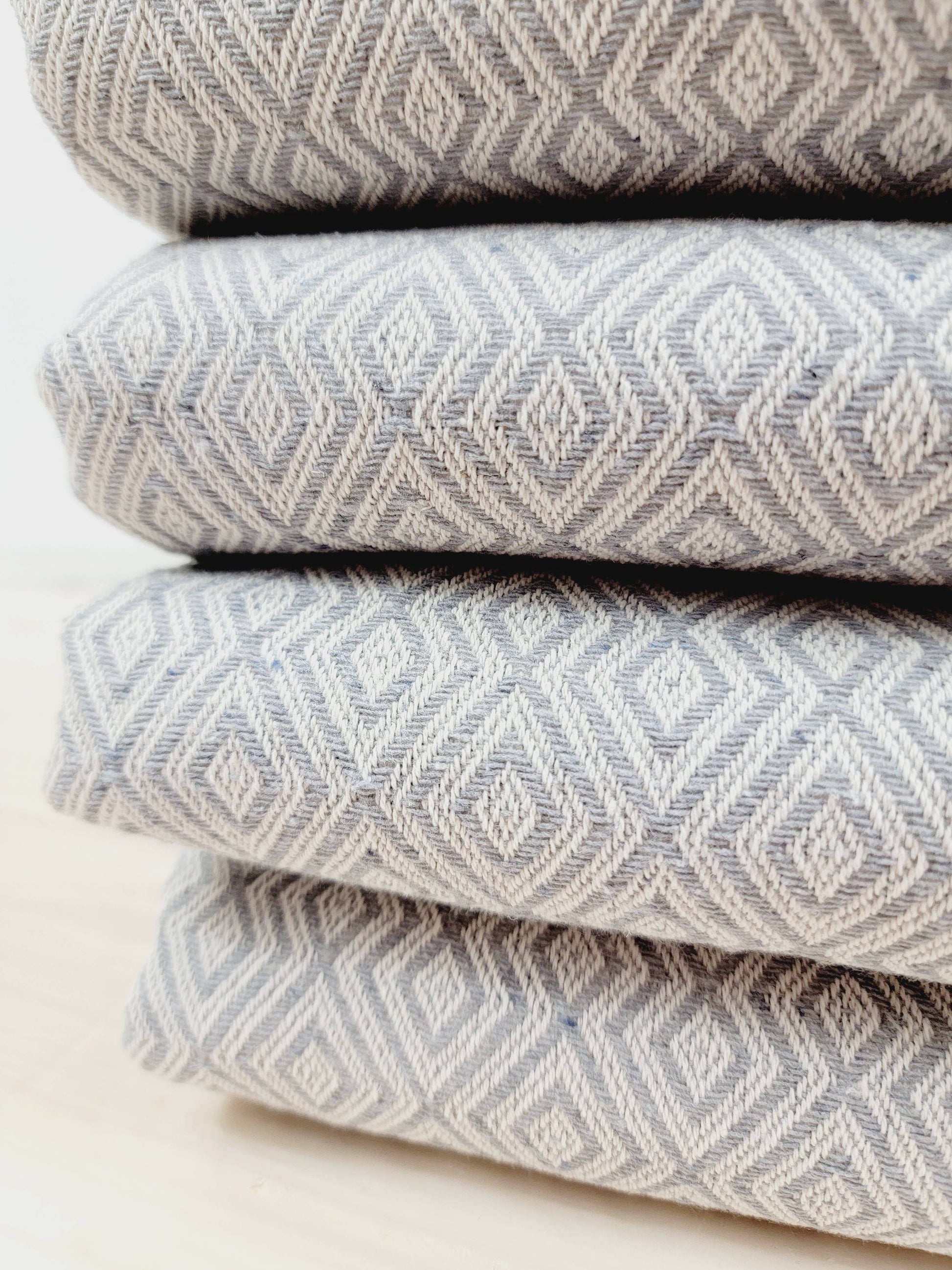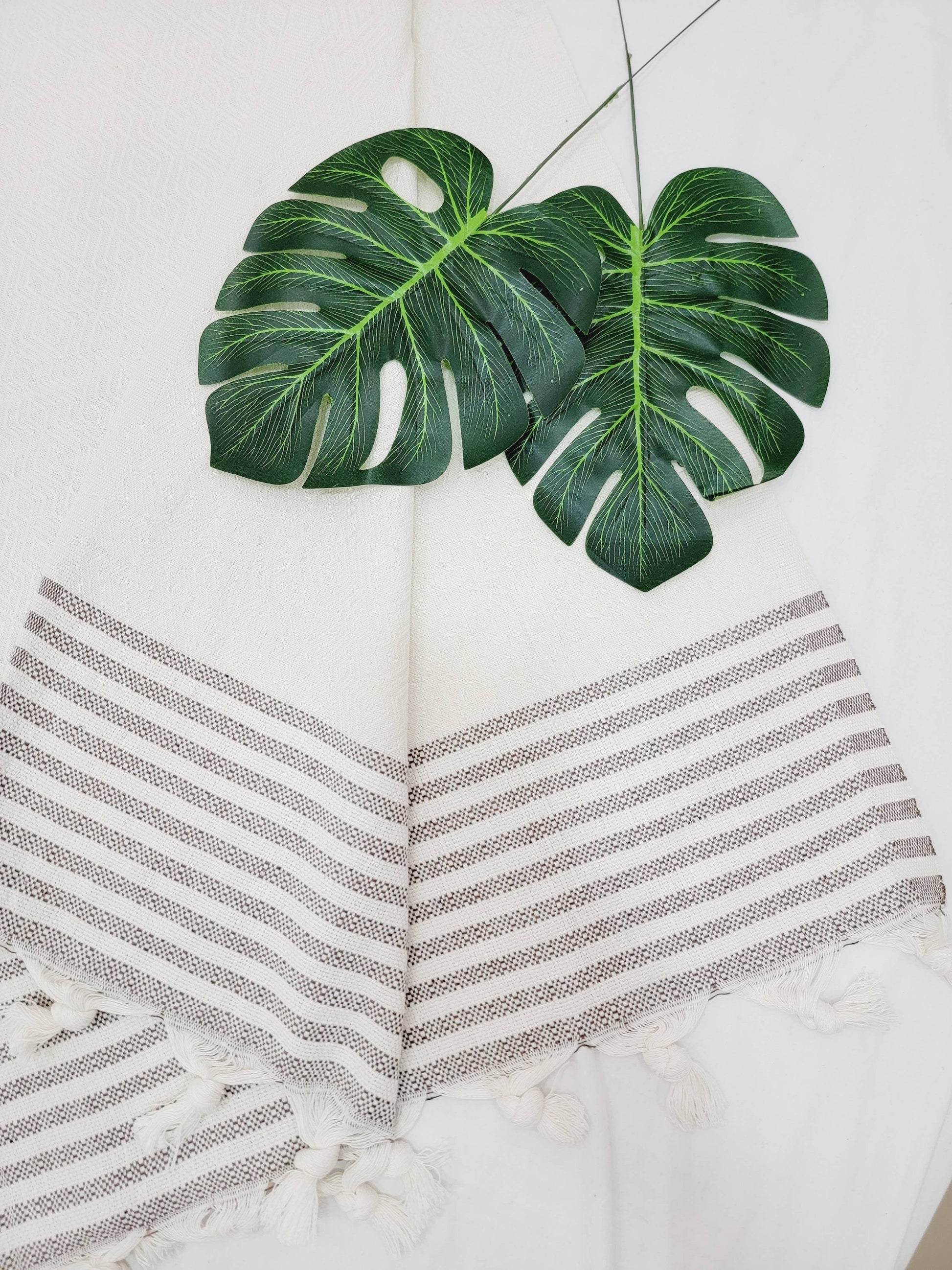 Our newest product are these woven cotton blankets, featuring our popular Turkish Towel designs. With measurements of 39 x 65" Inches, these blankets serve as both a bedspread and picnic companion. Constructed from 100% Premium Turkish Cotton, they are both sturdy and lightweight, making them perfect for daily use and outdoor activities alike. Elevate your bedding or outdoor gear with these durable blankets.