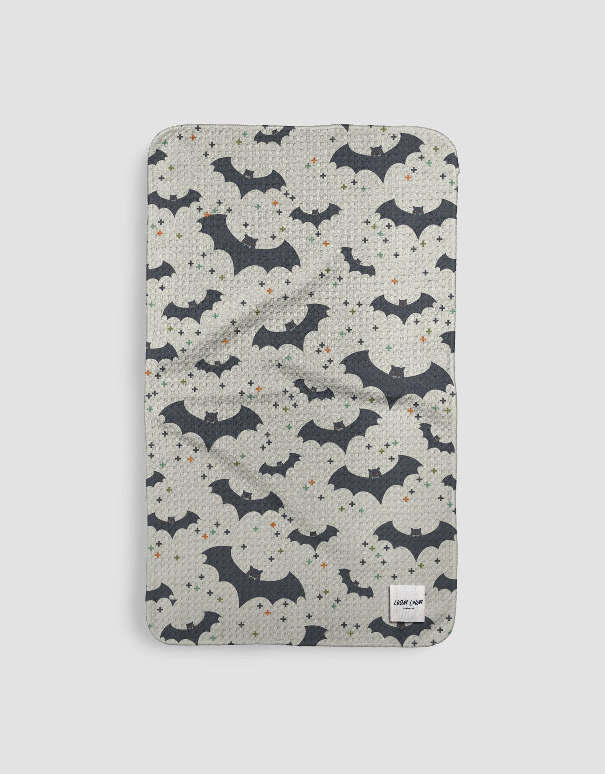 Loom Loom - Loom Loom Kitchen Tea Towel - White Black Bats Halloween Pattern Print Eco Microfiber Waffle Woven Towel