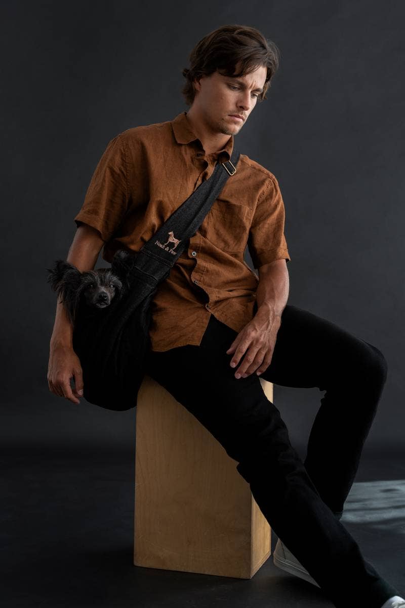 NOAH AND PAW LLC - Dog Sling Carrier Black Denim - Snap