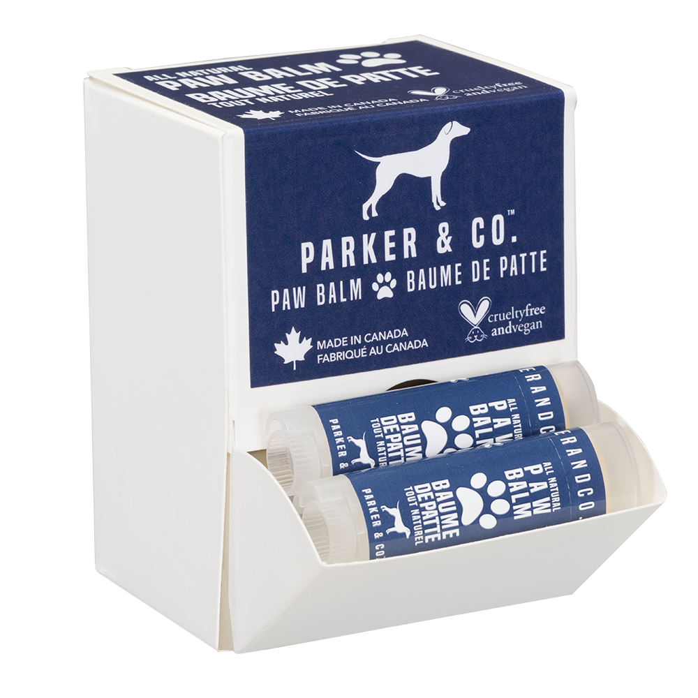 Product Details: Proudly Made in Canada 100% Natural Made with Certified Organic Ingredients Vegan and Cruelty-Free Parker & Co. fast-healing Paw Balm works all year round to soothe, repair, moisturize, condition and lightly protect your dog's paws.