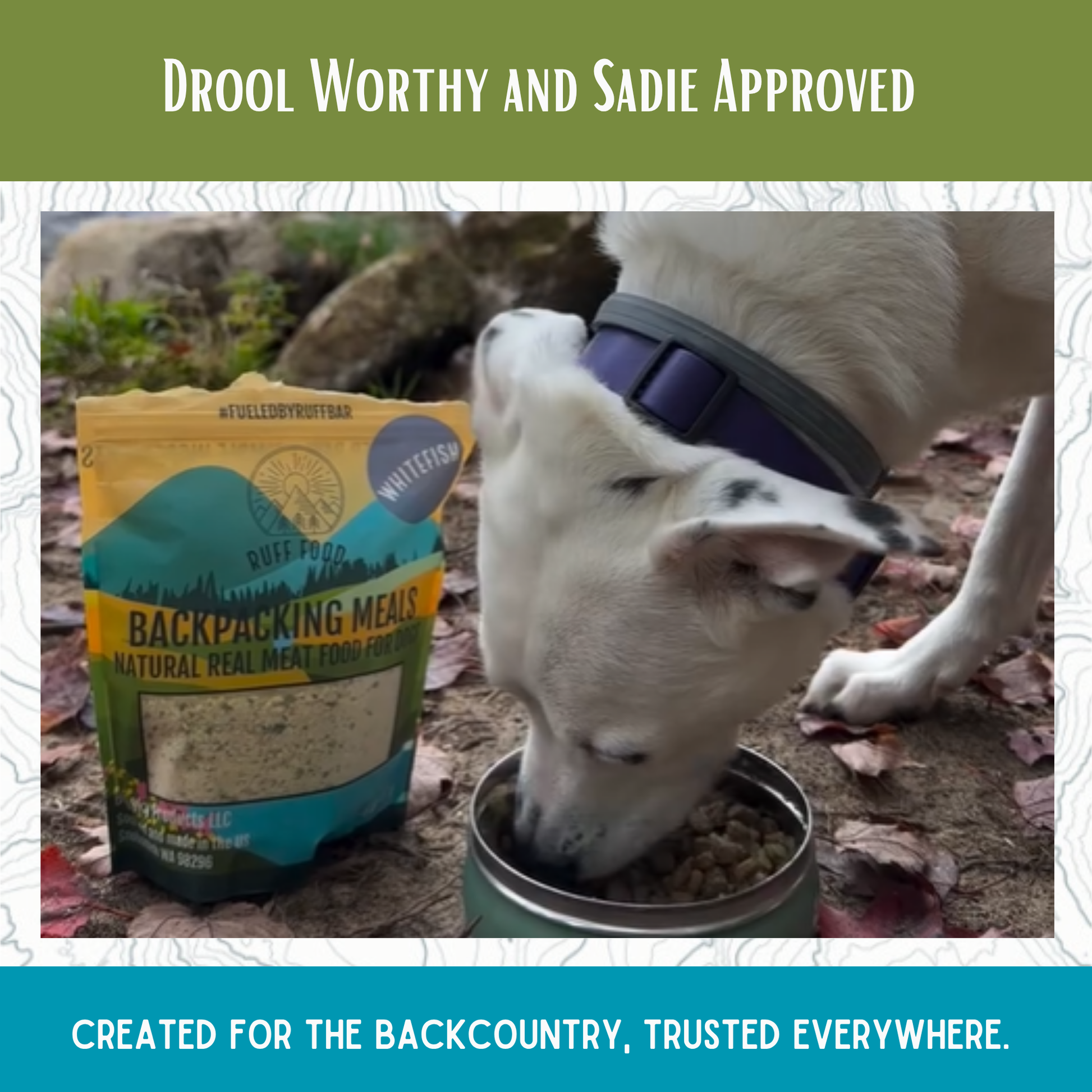 Perfect for dogs on the go, on the trail, as a meal topper, or in water to encourage hydration, Ruff Food is a great raw food options when on the go, adventuring, or if you forget to thaw out your dog’s food!