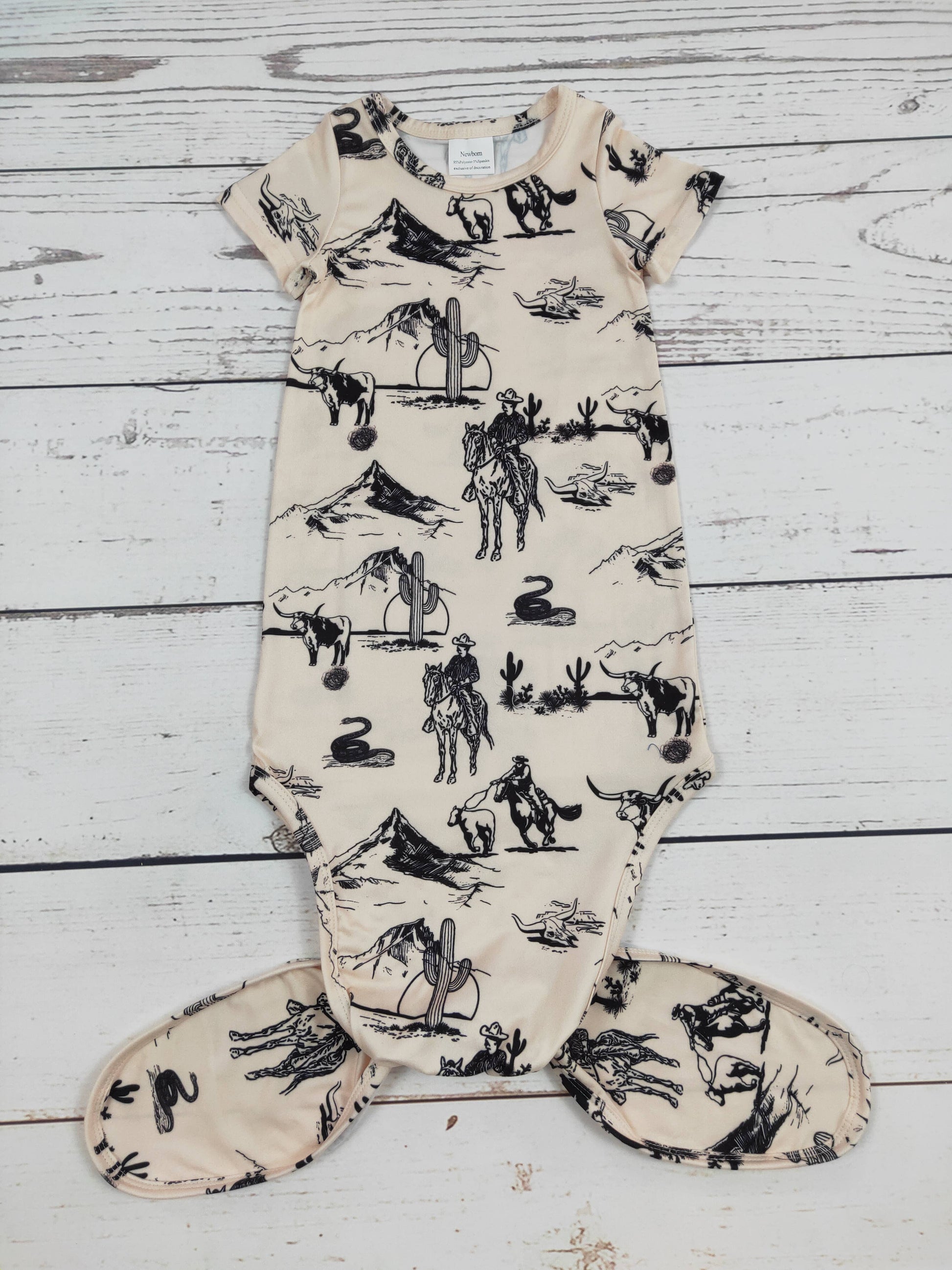 Rodeo Horse Printed Infant Baby gown Designed with both comfort and style in mind, this baby gown is perfect for any infant. From its soft fabric to its cute horse print, this gown is a must-have for any new parent. Material is polyester
