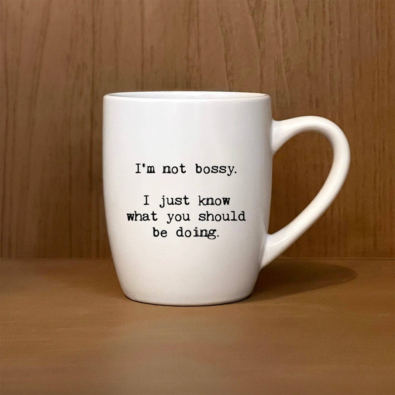 Enjoy the same witty charm from our popular signs and towels now in a durable mug. Featuring the bold statement, "I'm not bossy. I just know what you should be doing," this mug combines humor with function, making it a perfect addition to your daily routine or a thoughtful gift for someone who appreciates clever wit. Crafted for everyday use, it’s designed to brighten your coffee or tea breaks with personality and style.
