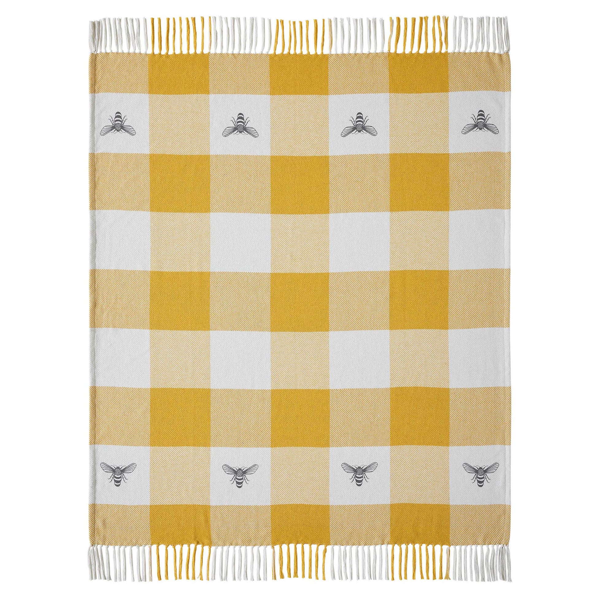 Introduce a touch of vintage charm into your home with the VHC Brands Buzzy Bees Woven Throw. Measuring 50x60 inches, this cotton blanket is part of the Buzzy Bees Collection, designed to add a delightful rustic touch to your bedroom and living room decor. Its vintage yellow color and textured woven fabric create a cozy, welcoming atmosphere. The Buzzy Bees Woven Throw boasts a check pattern featuring charming bees that adds a playful and primitive aesthetic to your surroundings. The combination of vintage appeal and a woven texture not only enhances the visual appeal but also ensures a comfortable and snug experience. Whether draped on your sofa or used as a bedroom accessory, this throw brings both style and warmth to your space. Embrace the rustic elegance of the Buzzy Bees Collection Woven Throw in vintage yellow. The vintage-inspired design and textured fabric give this throw a delightful blend of style and comfort. Whether you're using it to keep warm on cool evenings or to add a decorative touch to y