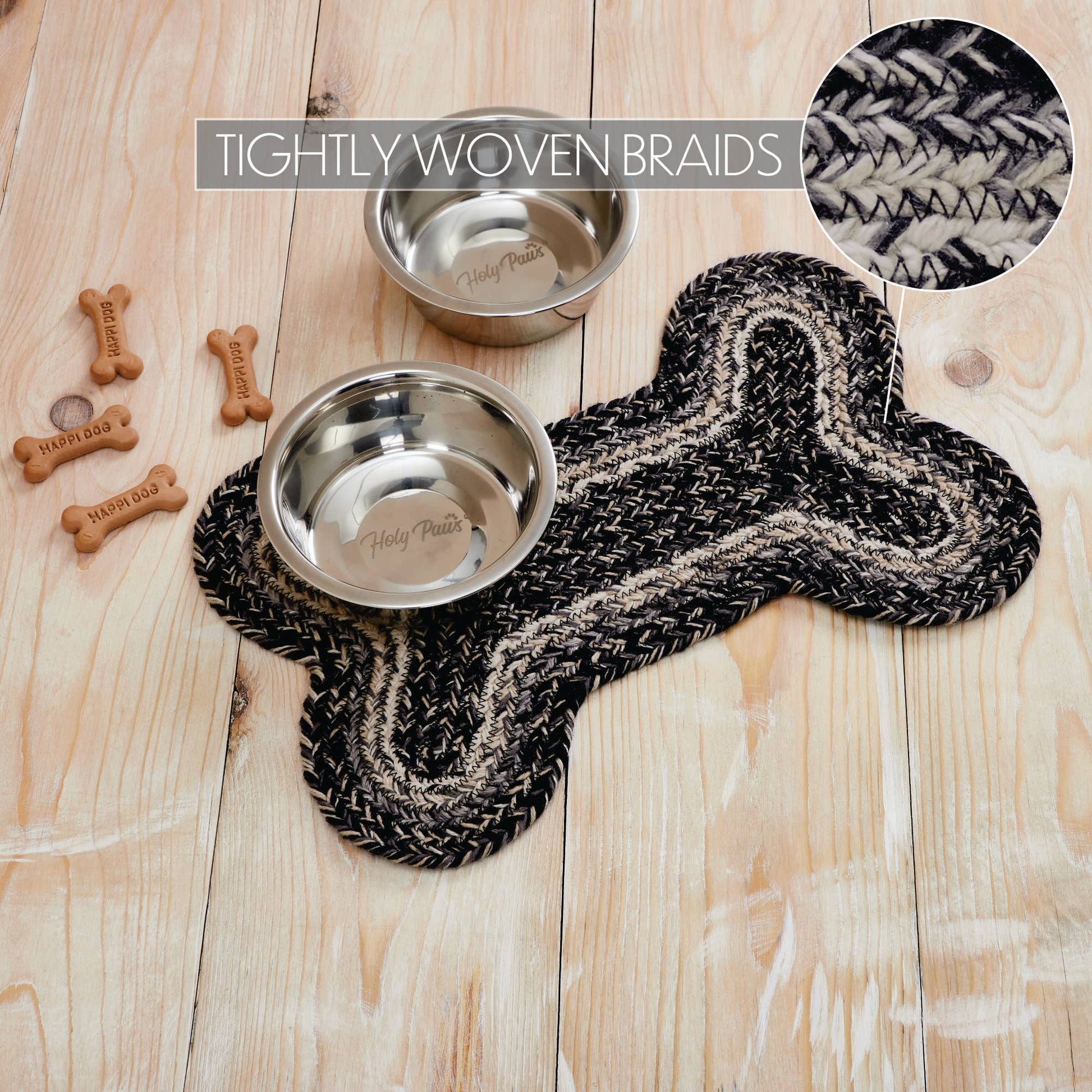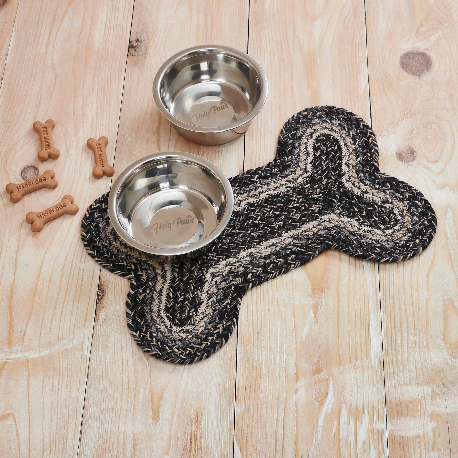 Give your pet a rug that is both stylish and practical. The Sawyer Mill Small Bone Rug measures 11.5x17.5 inches and is crafted with 100% recycled polyester material (PET) making it waterproof and durable. The bone-shaped pet rug is suitable for both indoor and outdoor use and is the perfect home for water and food bowls for small breed dogs. Rich caviar black with pops of grey, tan and creme make this a great match for modern farmhouse looks.