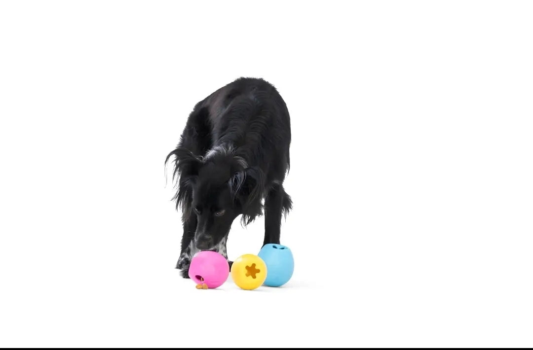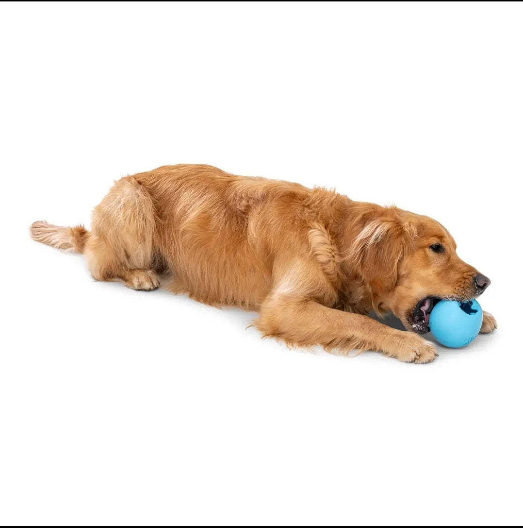 BUILT FOR MODERATE CHEWERS Super bouncy and crazy fun, West Paw’s dry treat-dispensing, puzzle dog toy, Rumbl, encourages healthy play. Rumbl's unique “fish trap” opening makes for easy loading, yet keeps dry food inside. Superior durability and hollow construction make this puzzle toy’s springy material heaven to a dog’s chompers while its playful wobble adds to the excitement and increases engagement.